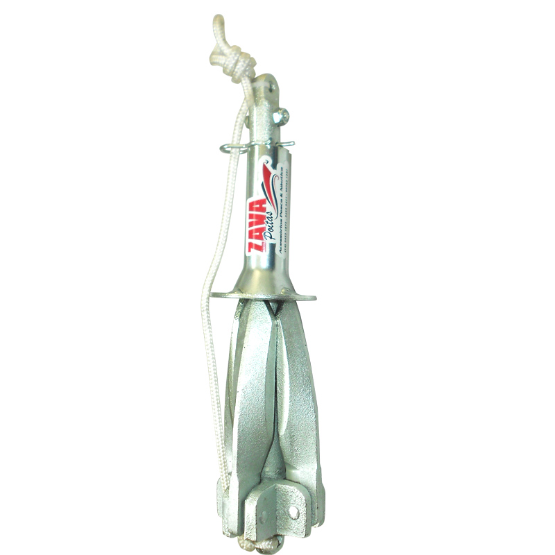 As Poitas Articuladas ZAVA, tem hastes articuladas, são de fácil manuseio; e possuem um sistema anti enrosco, que; se a poita enroscar no fundo do rio, é só manobrar no sentido oposto e esforçar para que o lacre (abraçadeira) se rompa, a trava se solte e a corda passe a puxar a poita recolhida ao contrario com as hastes fechadas, provavelmente assim desenroscando do fundo do rio.