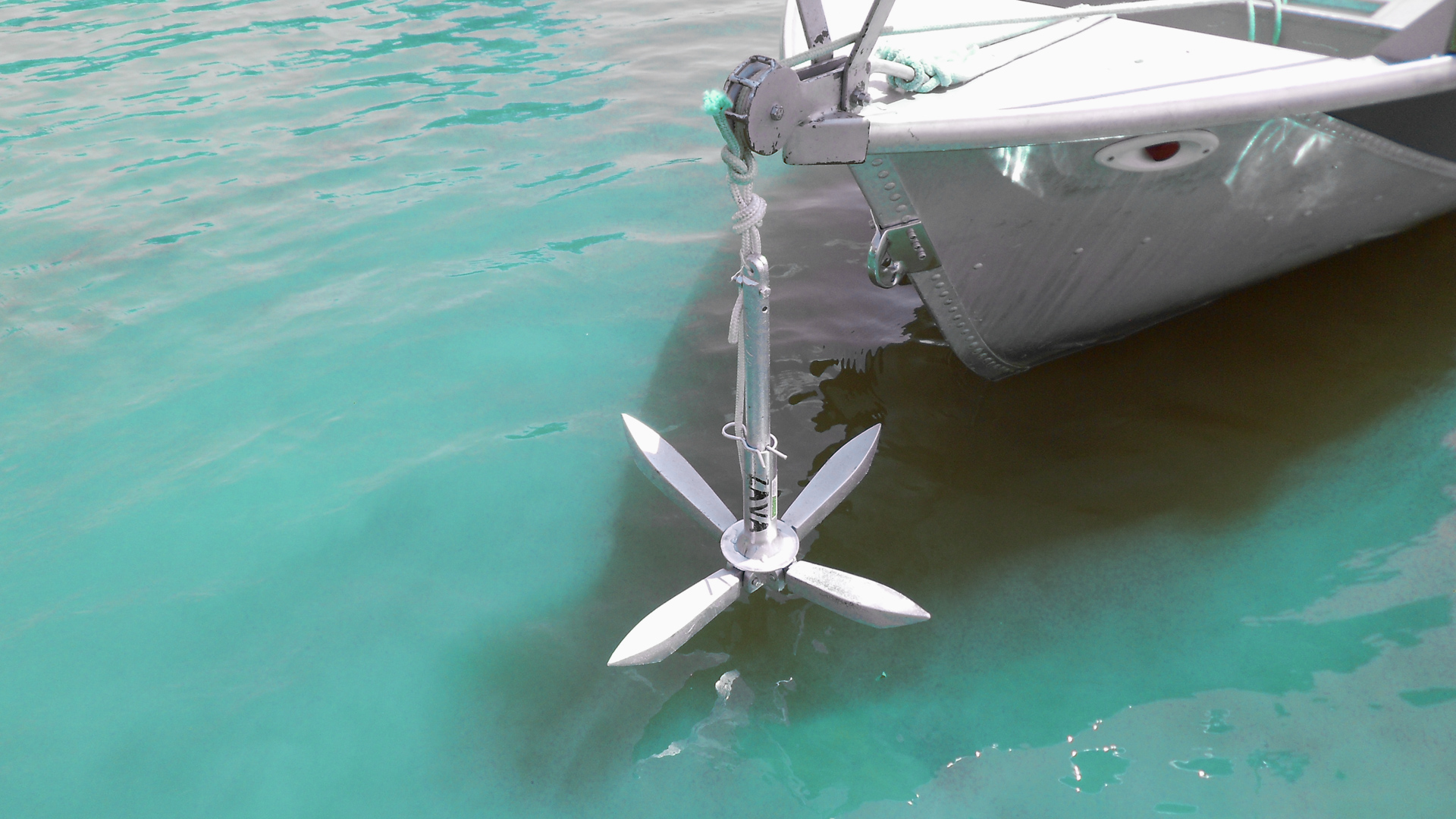 Facilita o manuseio de âncoras, desenvolvido para uso na PROA da embarcação, para ser fixado com rebites e parafusos no barco.