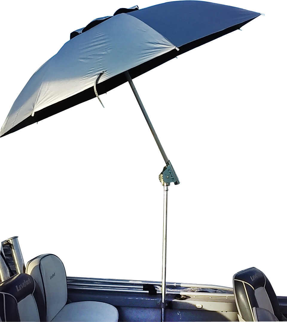 Suporte desenvolvido com haste longa de 1,20m, que permite que se utilize o guarda sol sem prolongador ou segunda haste. Permite a fixação simultaneamente em 2 pontos do barco (assoalho e borda), garantindo assim excelente fixação e resistência contra a ação do vento.